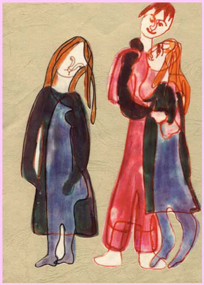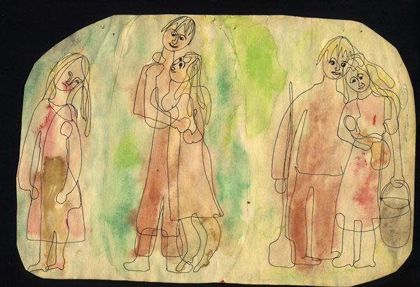 .: drei :. ur-original: drei gemalt mit filzstift, wasserfarben © tapa 1982 drei collage: filzstift und fineliner, anschließend aquarelliert © tapa 1994