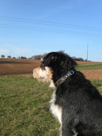 seine eltern sind ein riesenschnauzer und ein berner sennenhund.